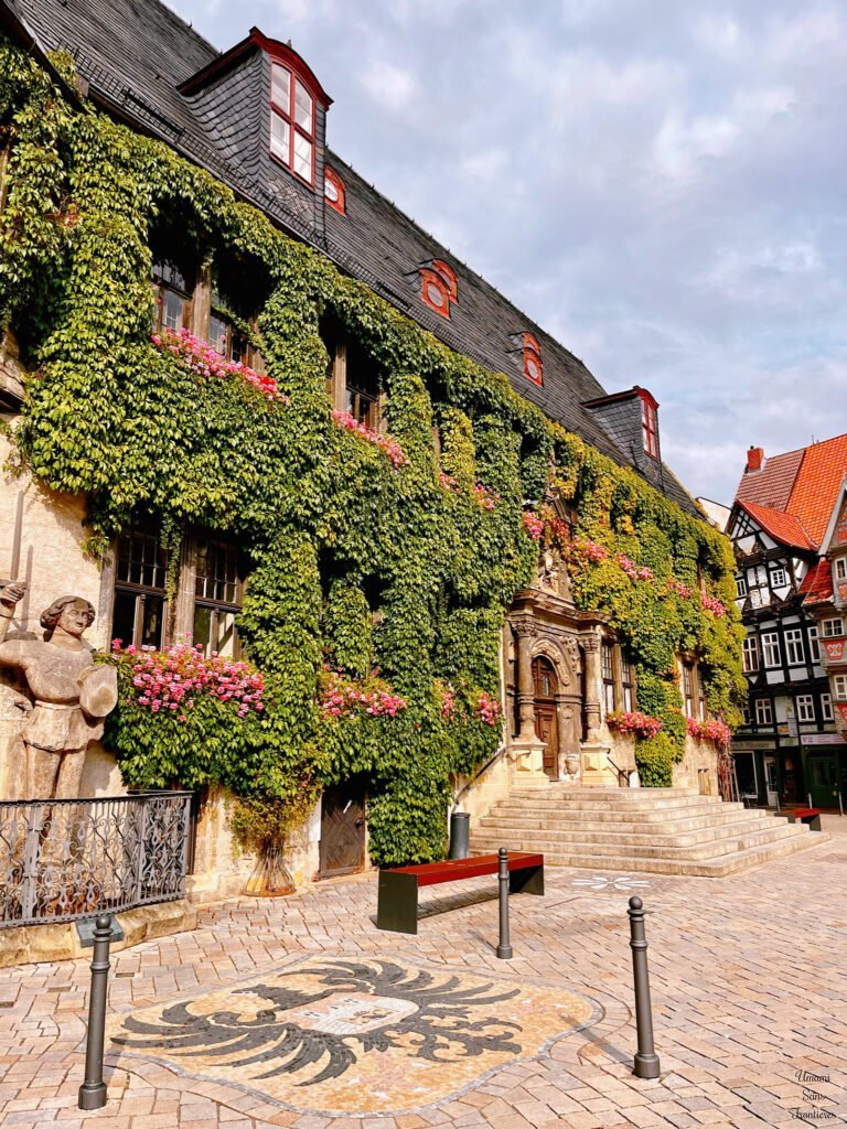 Cobblestone lanes wind past rows of colorful half-timbered houses, each decorated with flower boxes and sometimes completely covered in ivy. The whole town feels so pretty that it’s hard not to believe you’ve stepped right into a fairytale. Every café and restaurant seems to have its own unique charm, and my husband couldn’t resist stopping again and again to take photos, so many, in fact, that I couldn’t possibly fit them all into one post!😄 The Market Square with its historic Town Hall is especially breathtaking. Whether in the bright light of day or softly lit in the evening, it’s one of those spots where every angle could be a postcard.